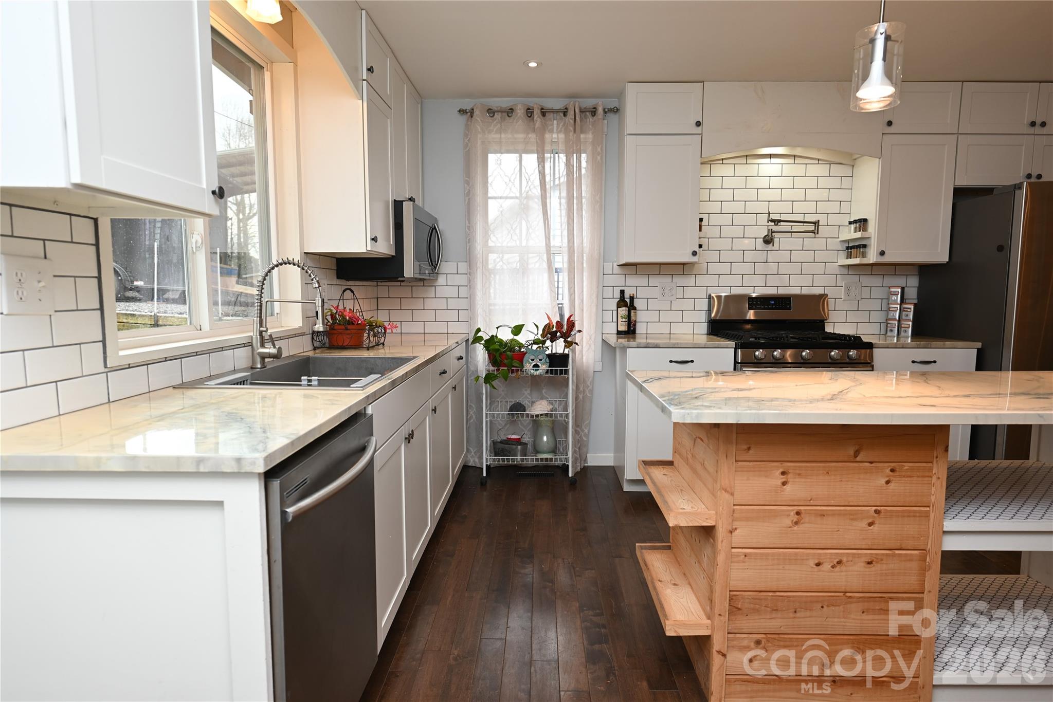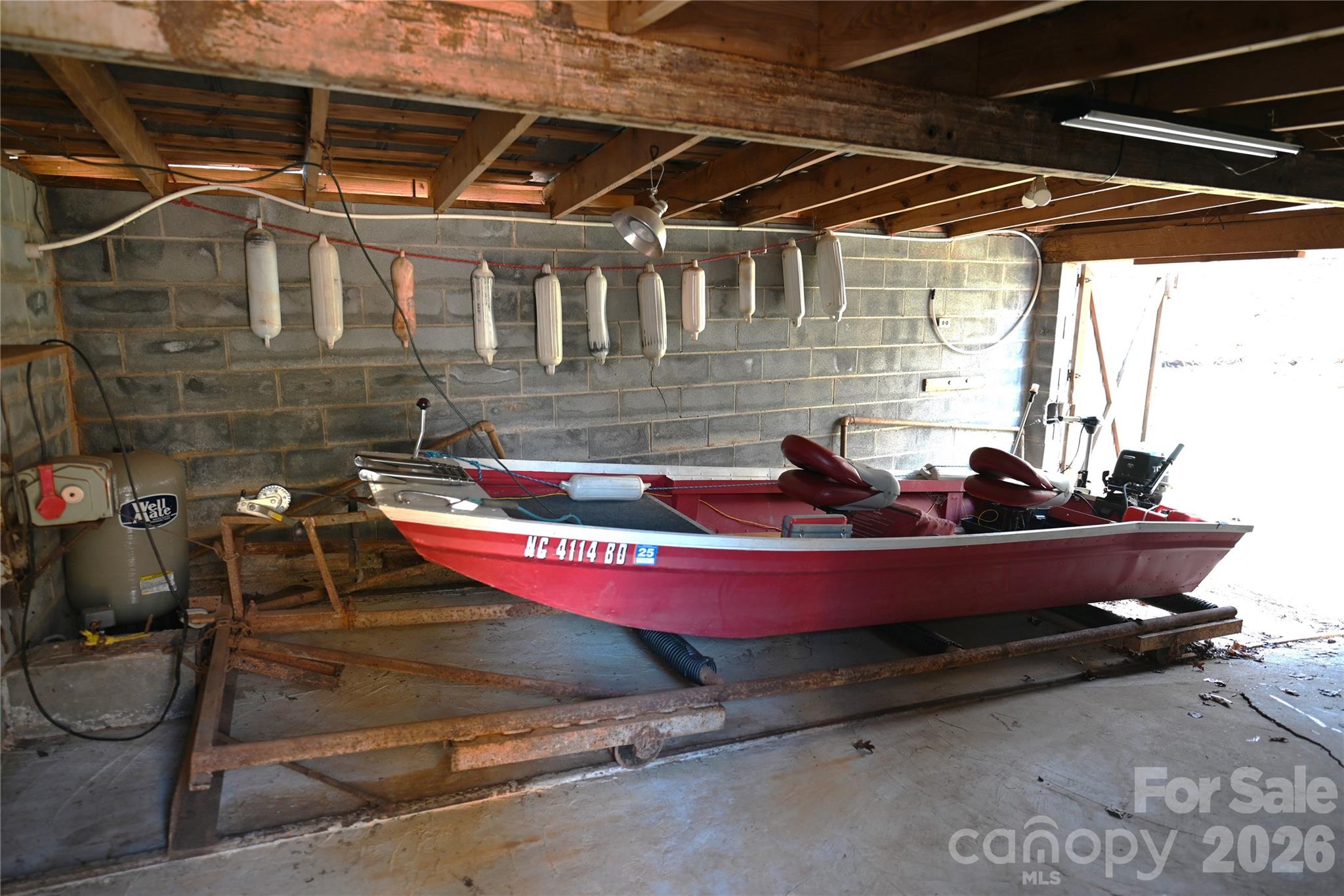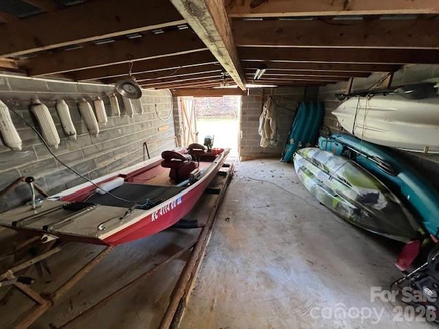 Charming waterfront bungalow with 85 ft. of lake frontage, a boathouse, and a concrete patio/dock perfect for lakeside living or investment. Short-term rentals such as Airbnb are allowed. The upper-level features two bedrooms, one full-bath, a stunning chestnut floor with picturesque views of the cove. The updated kitchen boasts a tile backsplash and granite countertops, which flow seamlessly into the beautifully designed living and dining spaces. The basement includes an additional kitchen, a wood stove, 2 additional sleeping rooms & bath, as well as easy lake access, offering the potential to rent out both levels separately. This property also includes a boathouse equipped with a winch and track for safely securing your fishing boat and lake toys. The stationary patio/dock, complete with a sink, are perfect for entertaining or relaxing by the water & watching the herons and wildlife. Bring your grill and your chairs and start creating unforgettable memories at this lakeside retreat.